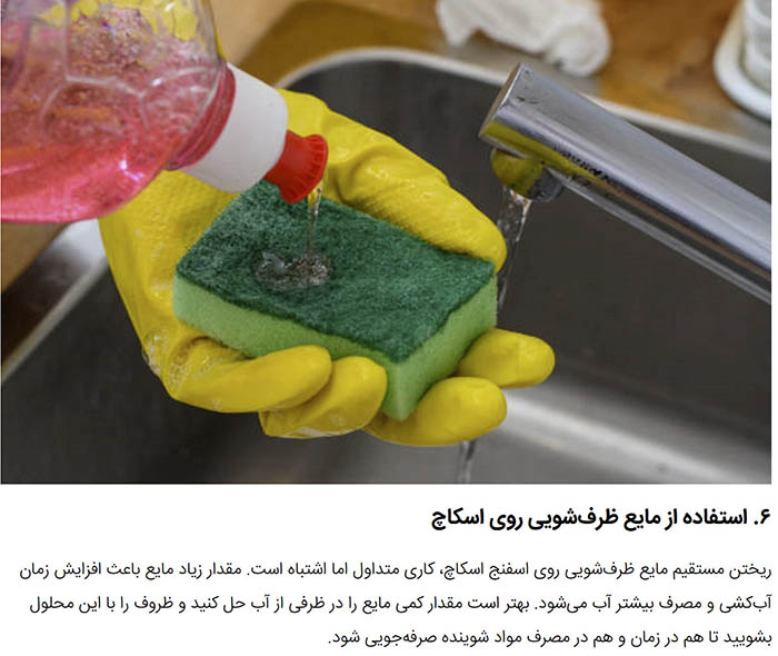 Pouring dish soap directly on Scotch pads or sponges causes excess foam and longer rinsing times.