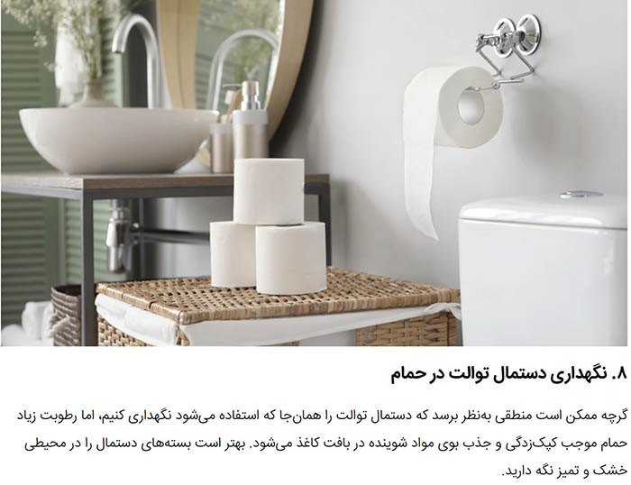 Storing toilet paper in the bathroom exposes it to humidity, which can cause mold and absorb odors.