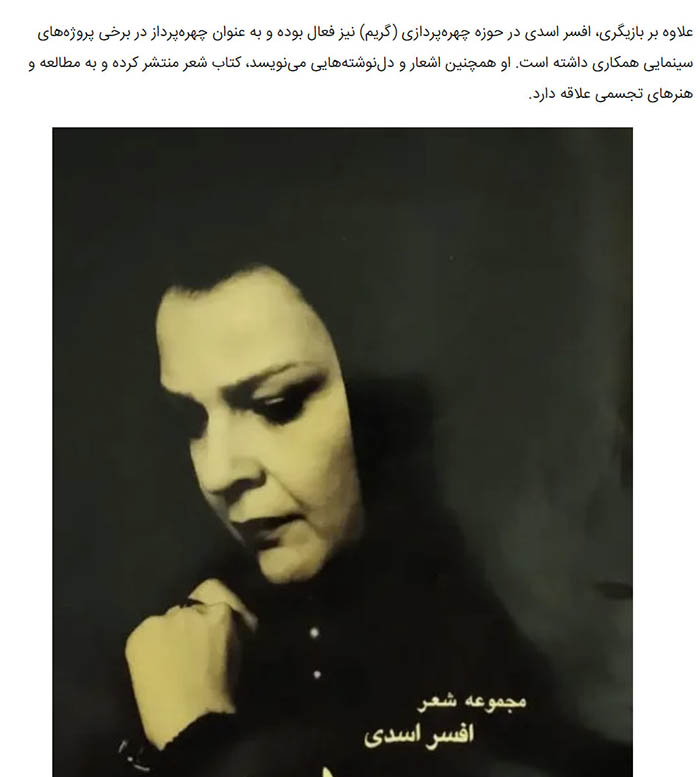 Apart from acting, Asadi has collaborated as a make-up artist on several film projects, showcasing his versatility and eye for detail in visual storytelling.