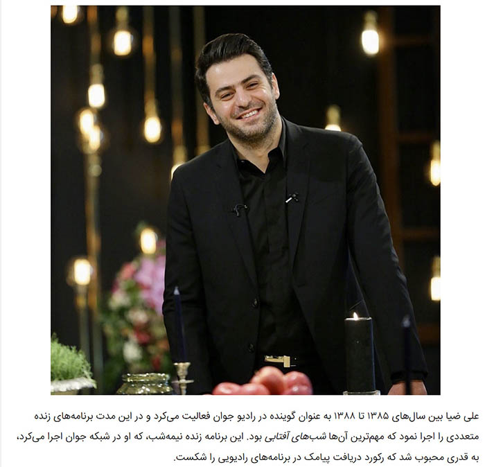 Ali Zia’s media journey began unexpectedly in 2005 at just 19 years old. A friend suggested he try his hand at radio, recognizing his talent for writing and storytelling. With his mother’s help, he crafted humorous radio sketches in Kashani accent and performed on Radio Javan.