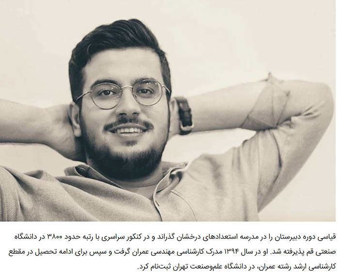 Despite his challenging circumstances, Ghiyasi was a gifted student. Recognizing his potential early on, he attended the School of Brilliant Talents, a specialized program for gifted students in Iran. There, he excelled academically and was recognized for his intellectual capabilities.