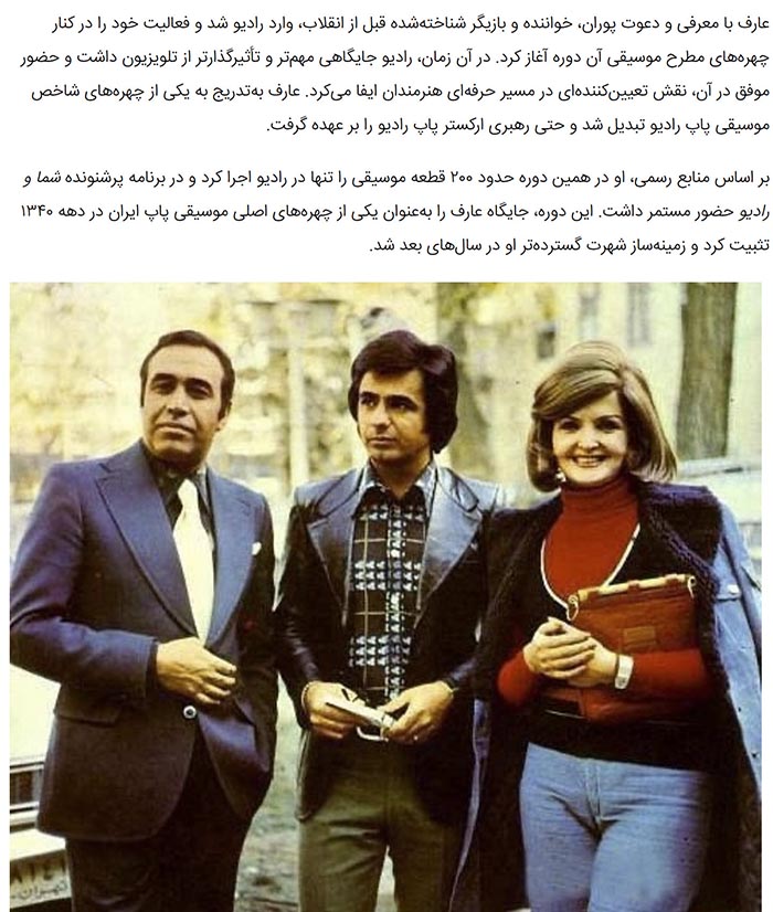 The 1979 Revolution marked a turning point in Aref’s life. Initially, he stayed for seven months, performing songs with revolutionary themes like “Brother Bia” and “Juaneh”.