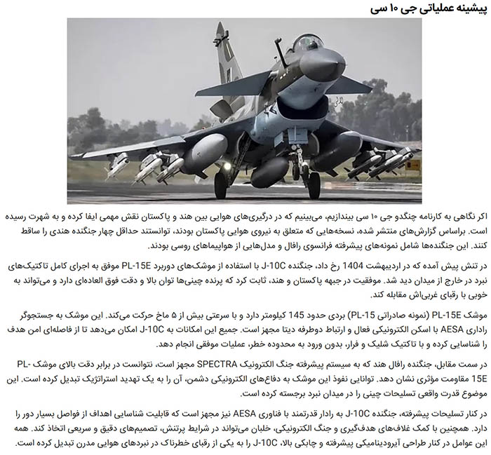 - Training and Doctrine: Iran would need to develop new tactics and training programs specific to the J-10C’s capabilities.