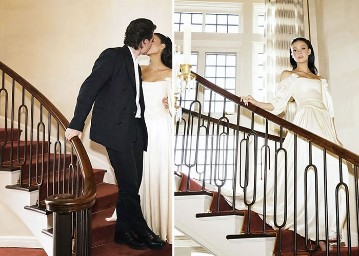Nicola chose to wear a stunning, customized version of her mother Claudia Peltz’s wedding dress from 1985. The dress featured an off-the-shoulder neckline, fitted bodice, and delicate floral detailing, symbolizing family heritage and timeless elegance. She complemented her look with a floral headpiece, which incorporated details from her mother’s original gown—a sentimental nod to family history.