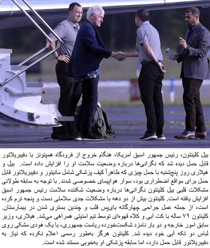 In recent weeks, former President Bill Clinton has been spotted leaving the Hamptons airport carrying a portable defibrillator, sparking widespread concern about his health among the public and media. The 79-year-old, known for his charismatic leadership and political legacy, has a long history of heart problems that have periodically made headlines. His recent appearance, accompanied by a medical bag and a security detail, has intensified discussions about his well-being.