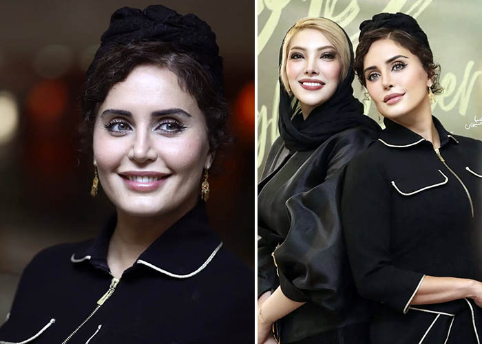 Elnaz’s attire at the “Moose on the Highway” screening was a perfect blend of classic elegance and modern chic. The black jumpsuit, with its tailored fit, emphasized her graceful figure while the gold-striped belt added a touch of luxury. Her style choices reflect her status as a fashion icon in Iran.