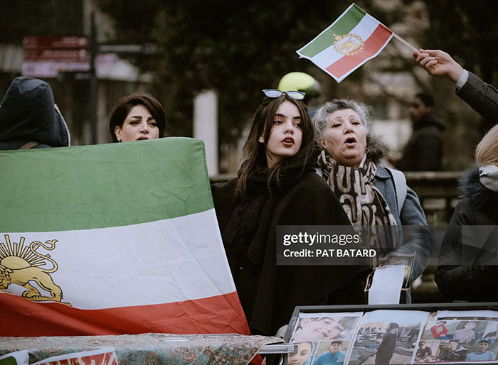 In London, UK, a powerful symbolic protest took place outside the Iranian Embassy on January 24, 2026. Supporters waved Iranian flags, held signs, and shouted slogans supporting freedom and justice.