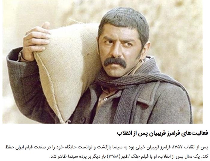 Gharibian’s acting was characterized by emotional depth, natural delivery, and a strong screen presence. He was known for immersing himself in his characters, often portraying rebellious youth, intellectuals, or marginalized individuals, thus becoming a voice for changing society.