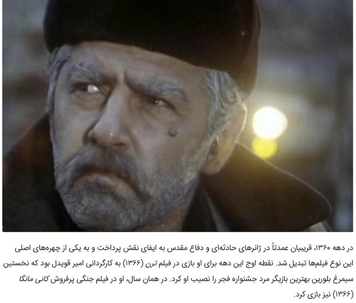 Throughout the 1980s, Gharibian predominantly appeared in films aligned with patriotic themes—depicting national struggles and heroism—and adventure movies. These roles resonated with national sentiments and helped maintain his popularity.