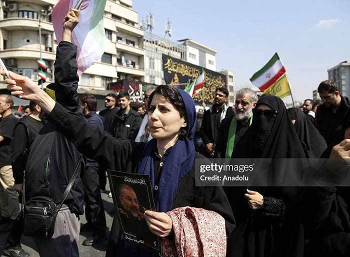 Women played a prominent role in the funeral, both as mourners and active participants. Many wore black chadors, while others carried photographs of the deceased or national flags.