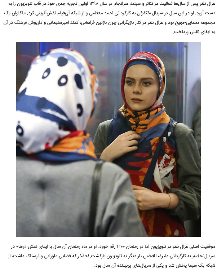 Ghazal’s acting style is characterized by emotional authenticity, natural expression, and a commanding screen presence. Her elegance and poise, combined with her dedication to her craft, make her one of Iran’s most promising and admired actresses.