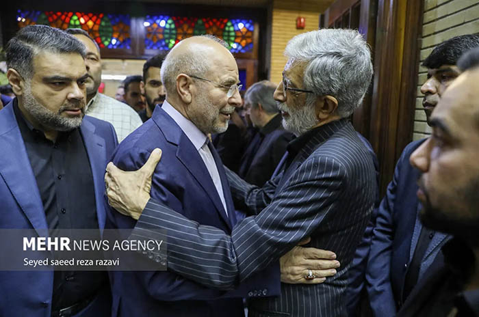 Political Figures at the Funeral of Fatemeh Mossadeghi Rad: Gholam-Ali Haddad Adel, Politicians, Tehran Noor Mosque Memorial