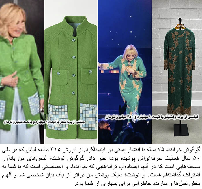 Googoosh, the legendary Iranian singer, actress, and cultural icon, has once again captured the world’s attention. At 75 years old, she announced the sale of 315 pieces of her personal wardrobe — clothing that has been part of her iconic career spanning over five decades. Through an emotional Instagram post, she shared her deep connection to these garments, emphasizing their significance as symbols of her journey, her music, her style, and her influence on generations.