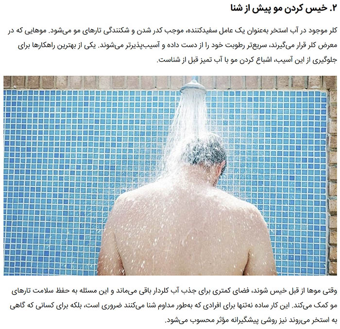 - Rinse hair immediately after swimming with fresh water to wash away residual chlorine.