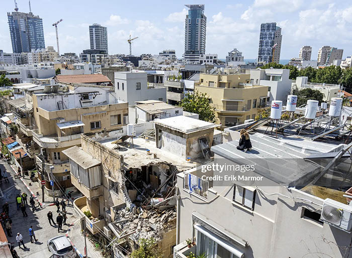 In Tel Aviv, Israeli Home Front Command units inspected buildings damaged by missile impacts. Sirens echoed across the city as residents sought shelter during incoming attacks.