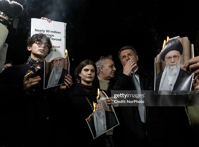 The lighting of Khamenei’s image is a powerful symbol representing resistance to dictatorship and support for freedom.
