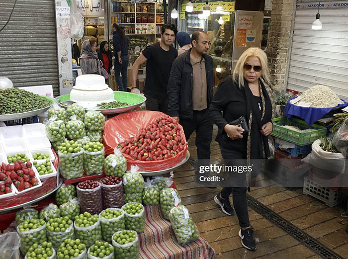 Northern Tehran, known for its relatively affluent neighborhoods, offers a striking image of resilience. Fruit markets remain vibrant, stacked with oranges, herbs, and pomegranates. Vendors call out prices, customers bargain, and life appears—at least outwardly—unchanged.
