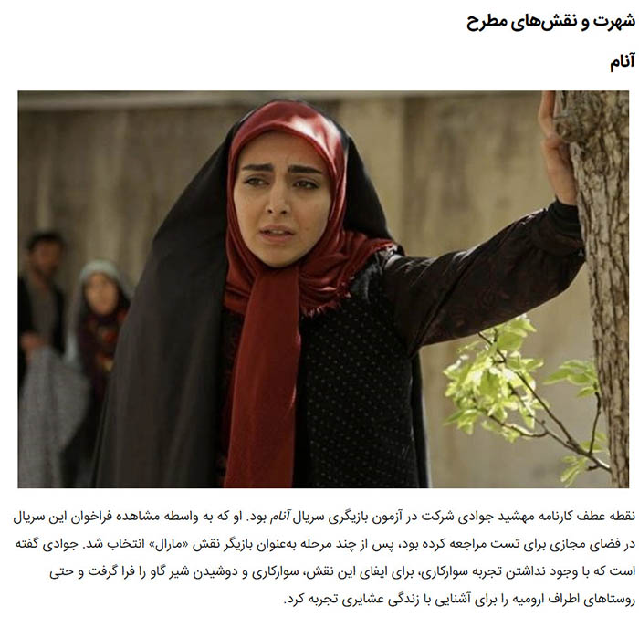 Mahshid Javadi’s acting career began with local theater productions and provincial television programs in Urmia. His debut roles included performances in “Hormat” (2014) and “Darya” (2016), both produced by the West Azerbaijan Provincial Network.