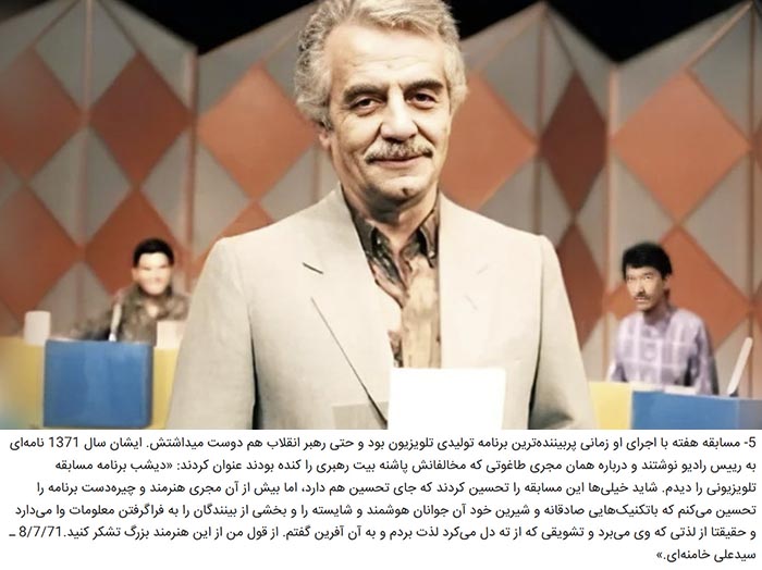 Throughout his career, Manouchehr Nozari mentored many young Iranian artists, radio hosts, and actors. His dedication to nurturing talent helped elevate Iranian media and entertainment.
