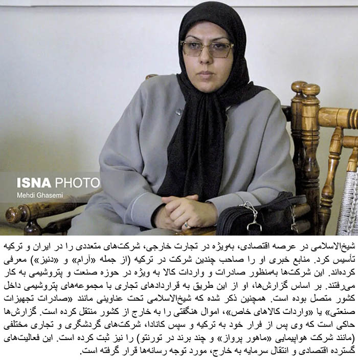 Her business activities included founding companies in Iran and Turkey, such as “Aram” and “Deniz,” primarily involved in exporting and importing industrial and petrochemical goods. She became known as a key figure in facilitating trade contracts with Iran’s petrochemical complexes, often under controversial circumstances.