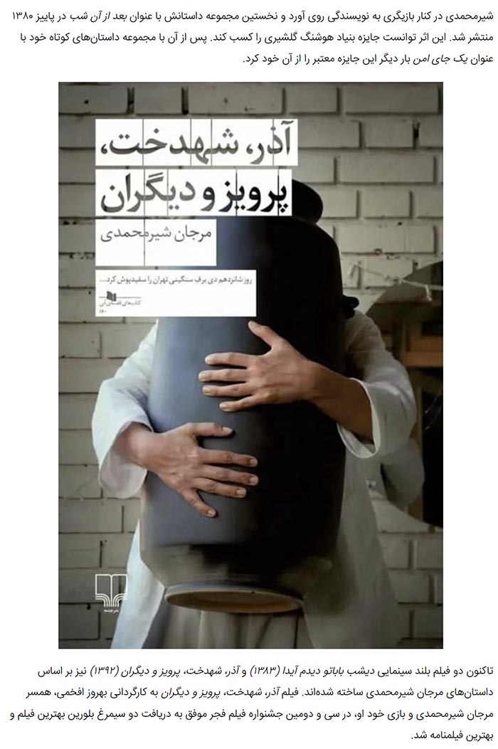 Marjan Shirmohammadi’s transition from acting to writing marked a significant evolution in her artistic journey. Her literary works are characterized by their introspective style, social commentary, and poetic language.