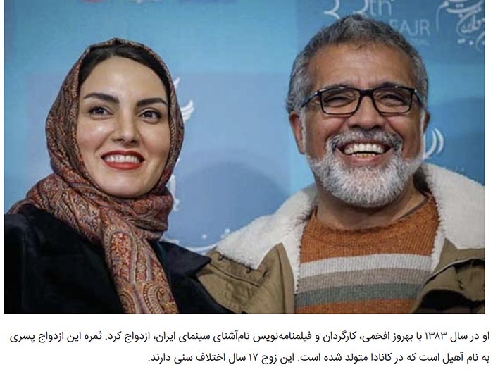 Marjan Shirmohammadi has been married twice. Her first marriage resulted in a son named Makan. In 2004, she married renowned Iranian cinema director Behrouz Afkhami, with whom she has a son named Ahil, born in Canada. Notably, there is a significant age difference of 17 years between her and her husband.