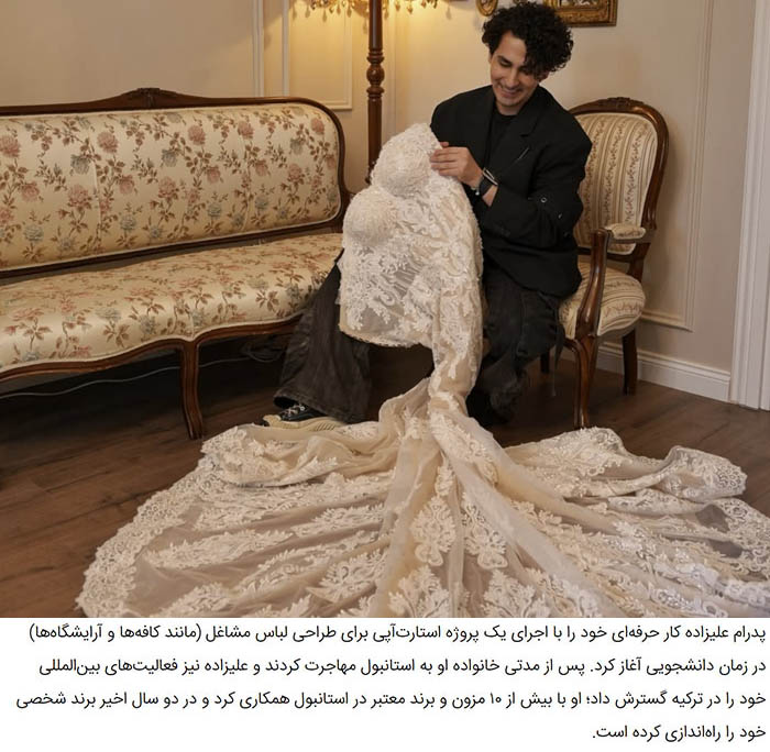 Pedram Alizadeh emphasizes style innovation, blending traditional Iranian aesthetics with modern fashion trends. His designs aim to:
