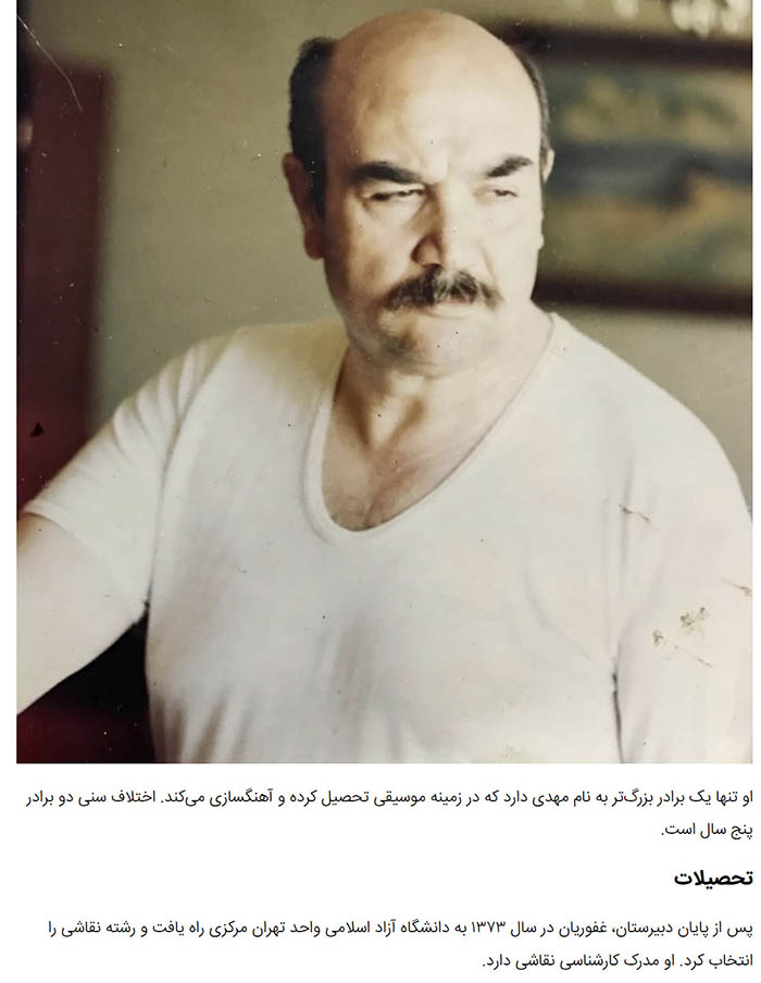 Mehran has an older brother, Mehdi Ghafourian, who is a professional musician and composer. The five-year age gap fostered a close sibling relationship, with Mehdi often supporting Mehran’s artistic pursuits.