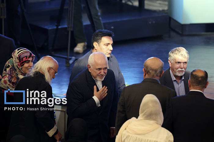 Memorial for Mahmoud Farshchian: Javad Zarif’s Unexpected Laughter Sparks Attention at Tehran Art Ceremony