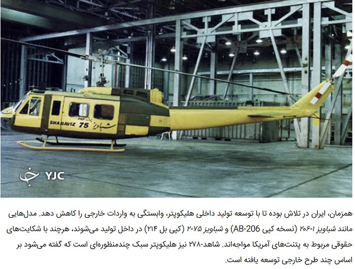 Iran has equipped some helicopters, such as the Bell 212, with indigenous sonar and electronic warfare systems, improving their capabilities in naval and anti-submarine roles.