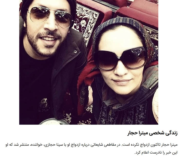 Mitra Hajjar has maintained a relatively private personal life. She has not publicly married and has kept her romantic relationships discreet. At one point, rumors circulated about her marriage to singer Sina Hejazi, which she publicly denied.