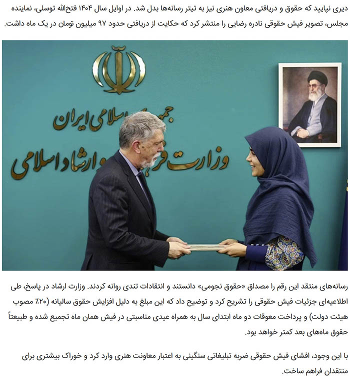 Nadereh Rezaei’s Dismissal: From the 97 Million NIS Paycheck to the Reaction to the Cancellation of Homayoun Shajarian’s Concert