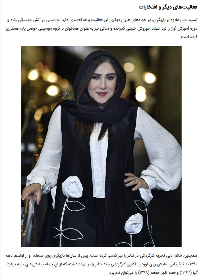 Nasim Adabi’s artistic journey exemplifies her versatility as an actress, voice artist, theater director, and educator. Her contributions have significantly enriched Iranian cultural life, inspiring countless aspiring artists.