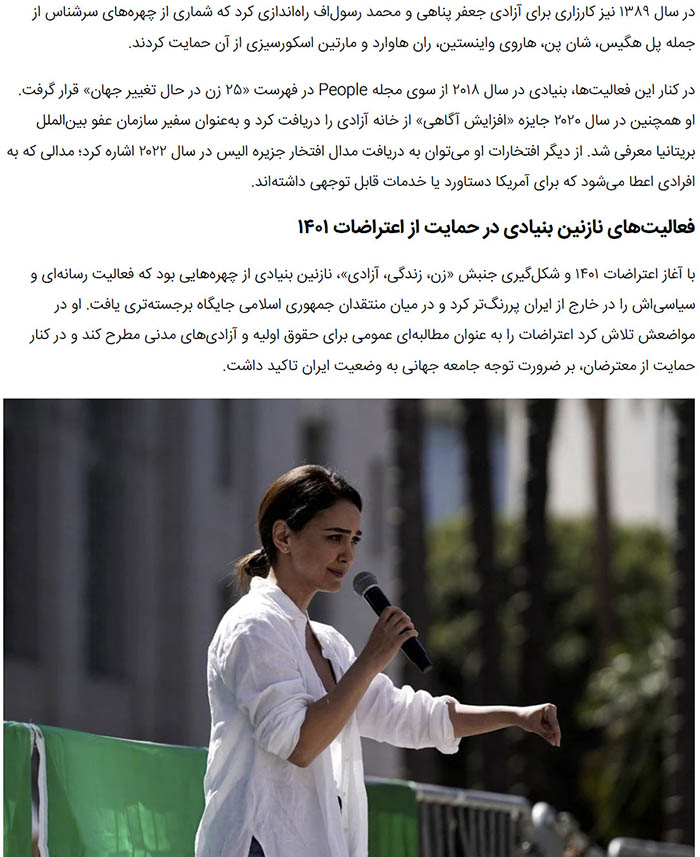 Her engagement in human rights activism began in earnest around 2009, driven by her desire to leverage her fame for social good. She described her motivation as stemming from her family’s journey and her own observations of injustice, discrimination, and repression faced by Iranian citizens, especially women and minorities.