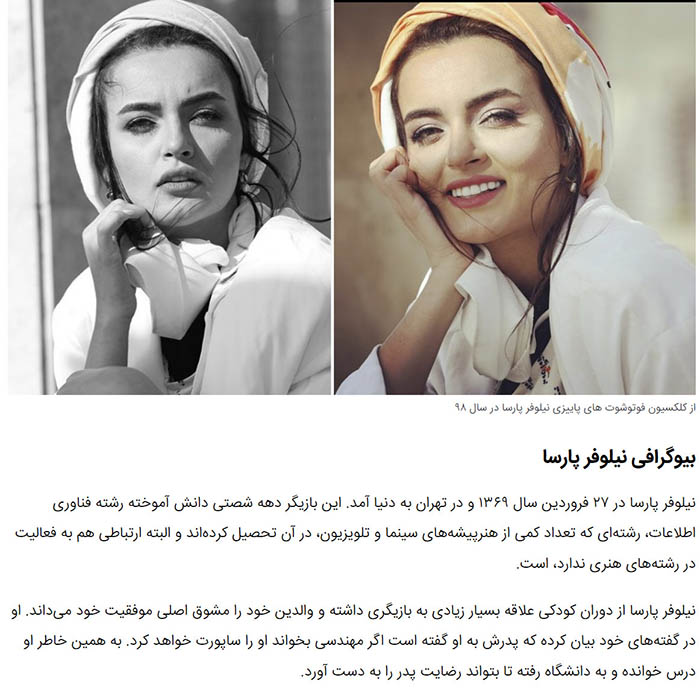 While many Iranian actors and actresses pursue arts or theater studies, Niloufar Parsa’s academic background in information technology is quite unique in the Iranian entertainment industry. Her choice reflects her analytical mindset and interest in technological fields, which she balanced alongside her artistic ambitions.