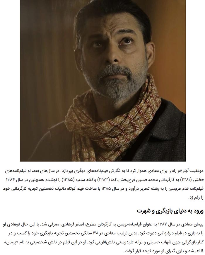After relocating to Iran, Peyman Maadi continued his primary and secondary education in Tehran. His early interests in cinema, literature, and storytelling grew during this period. Despite his academic pursuits in metallurgical engineering at the Islamic Azad University, Karaj Branch, his passion for arts and filmmaking remained a core part of his identity.