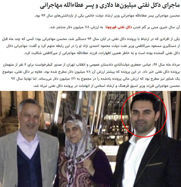 Mohsen Mohajerani, son of former Minister Ataollah Mohajerani, was implicated in the scandal involving the missing Fortuna oil rig, valued at over 78 million dollars. His arrest in 2015 drew widespread media attention, exposing corruption within Iran’s oil and energy sectors. After a protracted legal process, he was acquitted in 2018. This case exemplifies how Iran’s energy industry has been riddled with embezzlement, fraud, and misappropriation of national resources, often involving prominent families.