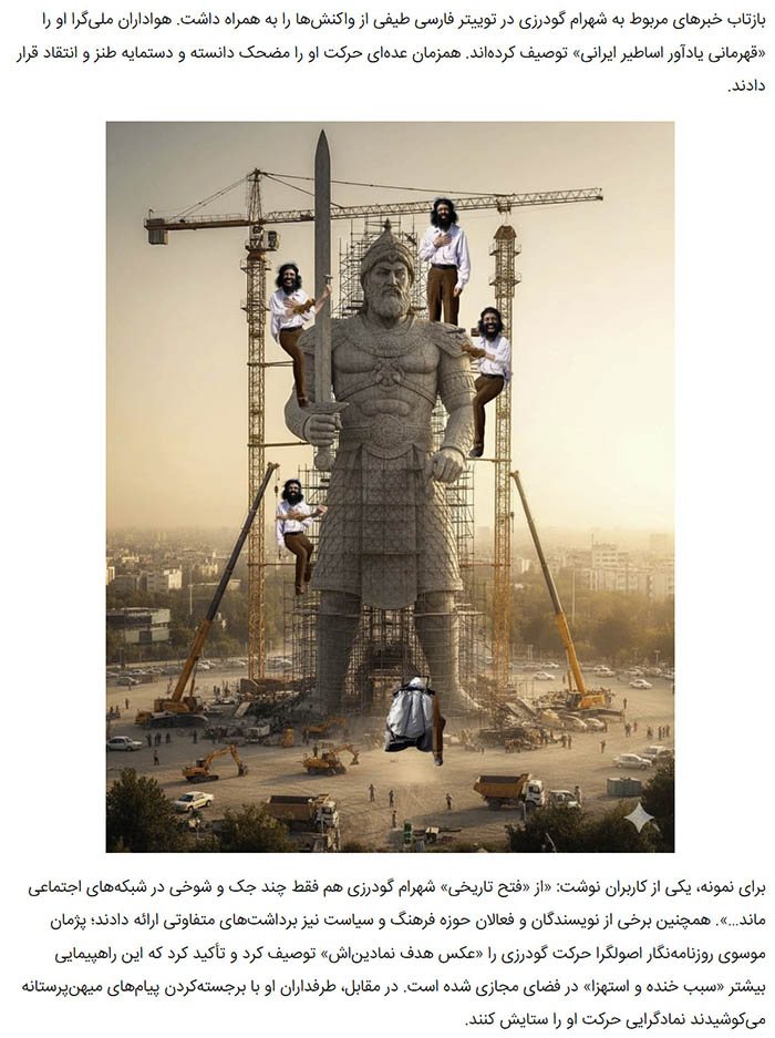 Goodarzi’s symbolic gestures—his statue, journey, and self-promotion—are intertwined with political themes: resilience, resistance, and cultural pride. These symbols serve to reinforce a narrative of Iranian strength against external adversaries and internal challenges.