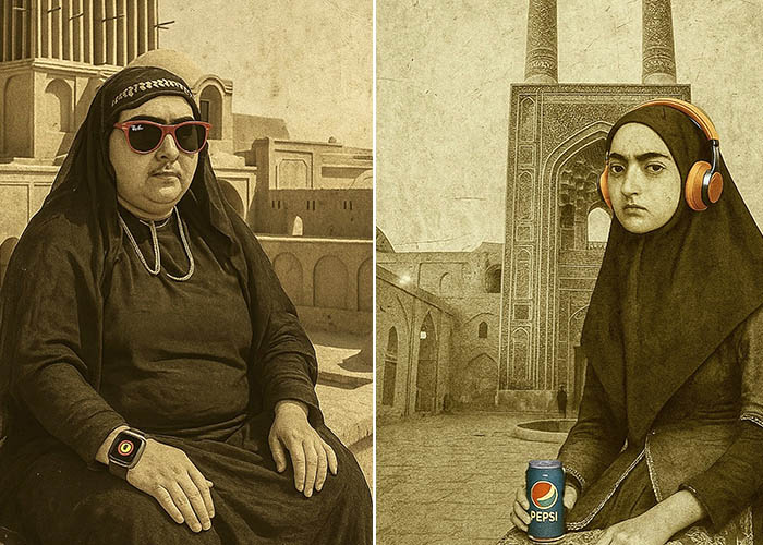 This innovative project involves AI creating images that appear to be “leaked” from a fictional archive—images that reveal what might have happened if different time periods intersected. The “Leaked Images from the Archives of Time” showcase people from the Qajar era equipped with modern luxury items and technology, sparking curiosity and cultural reflection.