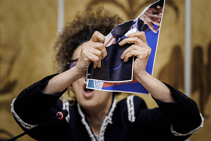Masih Alinejad’s Protest in Geneva: Tearing Up Photos of Khamenei, Rouhani, and Pezeshkian