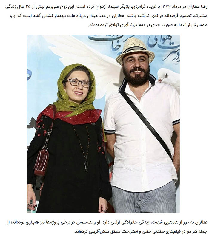 Reza Attaran married actress Farideh Faramarzi in August 1990. Despite their long marriage, the couple chose not to have children, citing mutual agreement. Attaran has emphasized the importance of maintaining a private family life and staying grounded despite fame.