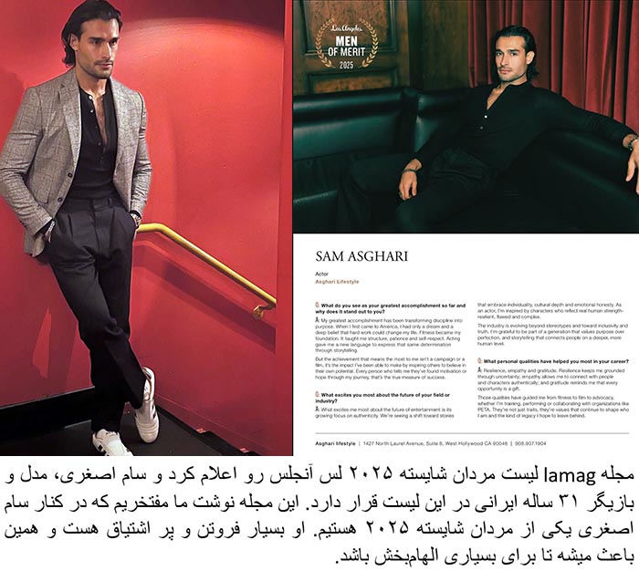 In 2025, LAMAG magazine announced its list of Most Handsome Men in Los Angeles 2025, and among the distinguished names was Sam Asghari, a renowned Iranian-American model, actor, fitness trainer, and social media influencer. With his striking looks, humble personality, and inspiring journey from Iran to Hollywood, Sam Asghari continues to capture the attention of fans worldwide and remains a prominent figure in the entertainment and fitness industries.