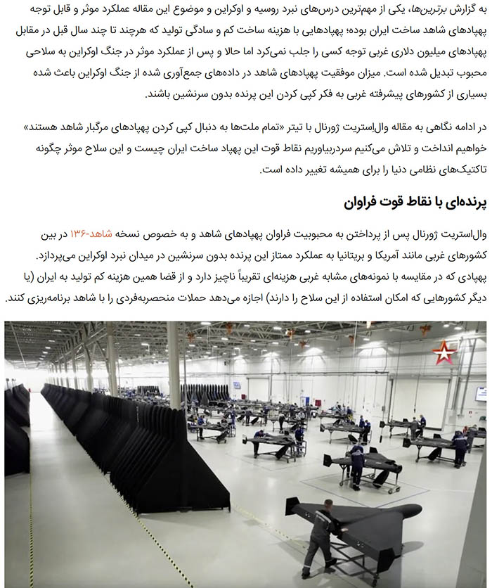 Western nations are interested in reducing dependency on foreign technology and developing indigenous or allied drone manufacturing capabilities. The simple design and mass production potential of Shahed drones make them an ideal model for developing domestic drones that are easy to produce and customize.