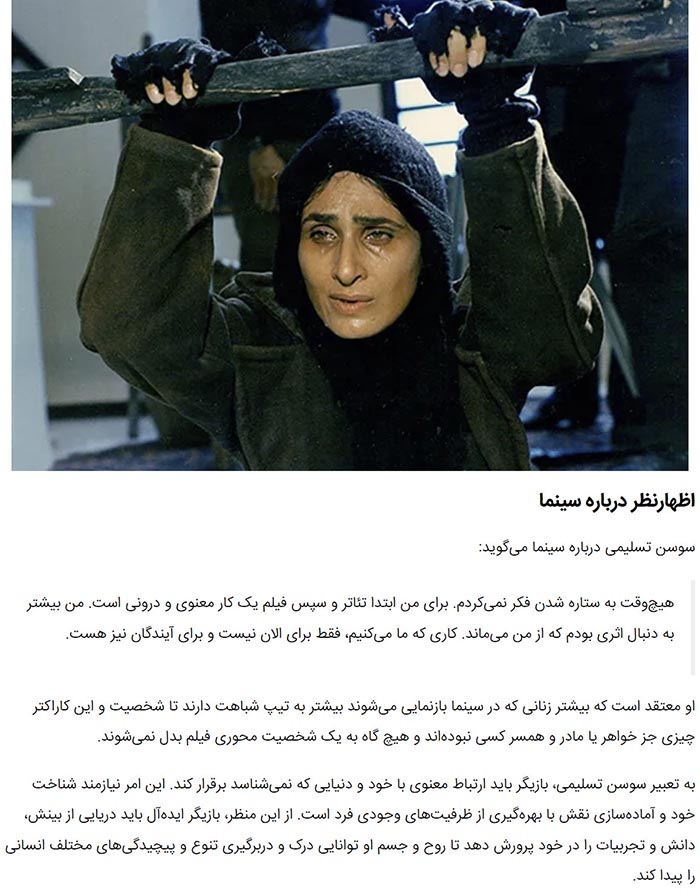 Susan Taslimi’s life and career embody the essence of artistic resilience, cultural dialogue, and creative excellence. From her early beginnings in Rasht to her international success in theater, film, and television, her journey is a testament to her unwavering love for art and her commitment to shaping societal perceptions through her performances.