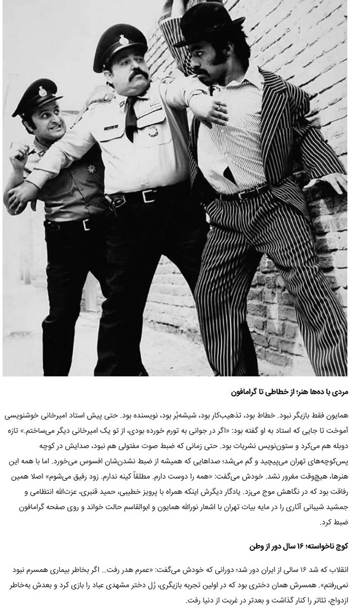 Homayoun believed that “an actor must live to be believed,” and he brought authenticity to his roles. His performances reflected the everyday struggles and joys of ordinary Iranians, making him a relatable and beloved figure.
