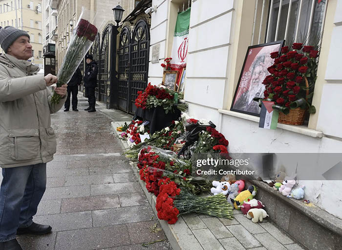 Tributes to Ali Khamenei Outside Embassies in Moscow and Bishkek After U.S.–Israel Strikes