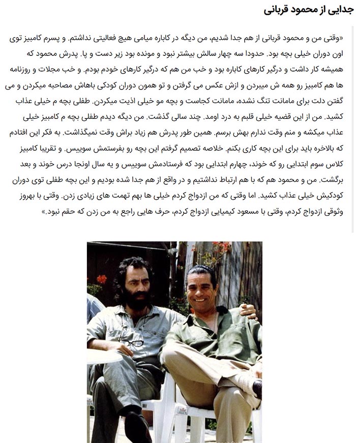 During her years abroad, she faced financial hardships, loneliness, and cultural dislocation. She struggled with her addiction, mental health issues, and the pain of being separated from her homeland and her son, Kambiz.
