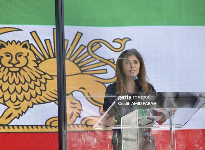 - Thousands of participants waving pre-1979 Iranian flags