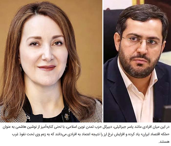 Meanwhile, individuals like Yasser Jabraeili, Secretary General of the Islamic Modern Civilization Party, have sarcastically dubbed Noosheen Hashemi as the “Queen of Iran’s Economy.” He criticizes her influence and the activities of her foundation, suggesting that their involvement in economic affairs has contributed to instability, exemplified by the recent surge in the exchange rate. Jabraeili believes that this increase is a direct result of public trust in figures who, in his view, are under Western influence and serve foreign interests. He argues that such perceptions undermine national sovereignty and promote economic dependency on external powers, further fueling the debate over the role of Western-educated elites and foreign-backed organizations in Iran’s internal affairs.